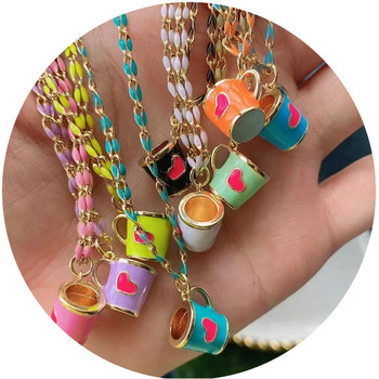 Tazza da caffè in smalto colorato con ciondoli a cuore collana caffettiera/tazze collana con ciondolo con perline