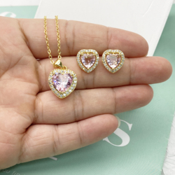 Set di orecchini con collana a cuore rosa set di gioielli d'amore con zirconi cubici regali di gioielli per la festa della mamma per le donne mamma moglie