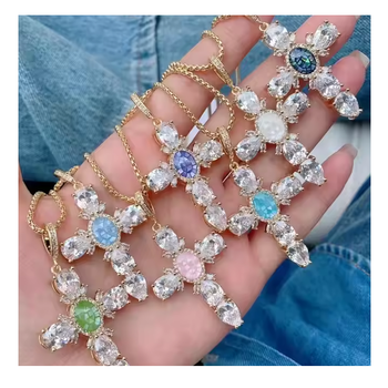 Collana con croce di religione cristiana placcata in oro con ciondolo a forma di croce con ciondolo in cristallo colorato alla moda Cz
