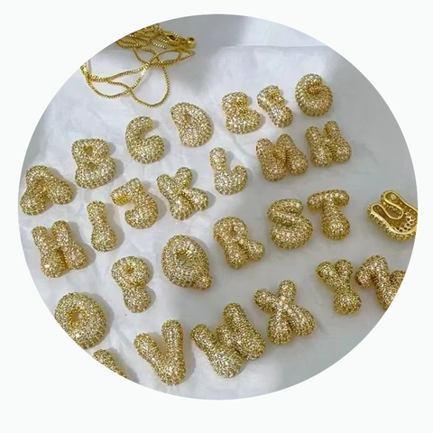 Nuovi gioielli alla moda 26 lettere ciondolo piccolo Chunky Puff bolla palloncino in ottone zircone collana con ciondolo alfabeto iniziale